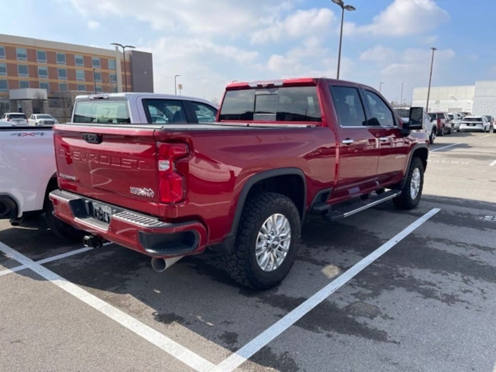Recent Arrival! Odometer is 6156 miles below market average!Cherry Red Tintcoat 2021 Chevrolet Silverado 2500HD 4D Crew Cab Duramax 6.6L V8 Turbodiesel High Country 4WD 10-Speed Automatic WILSON COUNTY MOTORS, A BONE FAMILY TRADITION SINCE 1927! Price does not include $796 Processing Fee , Taxes, Title and License.WE STAND BEHINDTHE PRE-OWNED VEHICLES WE SELL. EACH VEHICLE IS CAREFULLY INSPECTED TO ENSURE QUALITY AND RELIABILITY, MAKING WILSON COUNTY MOTORS A STRESS-FREE PLACE TO BUY YOUR NEXT VEHICLE.10-Speed Automatic, 4WD, Jet Black/Umber Leather, 10-Way Power Driver Seat Adjuster w/Lumbar, 10-Way Power Passenger Seat Adjuster w/Lumbar, 12-Volt Rear Auxiliary Power Outlet, 120-Volt Bed Mounted Power Outlet, 120-Volt Instrument Panel Power Outlet, 15 Diagonal Multicolor Head-Up Display, 170 Amp Alternator, 220 Amp Alternator, 4-Wheel Disc Brakes, 4G LTE Wi-Fi Hotspot Capable, 5th Wheel & Gooseneck Trailer Wiring Provisions, 6 Rectangular Chromed Tubular Assist Steps, 7 Speakers, 720 Cold-Cranking Amps Heavy-Duty Battery, 8 Diagonal Multicolor Digital Display DIC, ABS brakes, Advanced Trailering System, Air Conditioning, Alloy wheels, AM/FM radio: SiriusXM with 360L, Apple CarPlay/Android Auto, Auto-dimming door mirrors, Auto-Dimming Inside Rear-View Mirror, Auto-dimming Rear-View mirror, Automatic Emergency Braking, Automatic temperature control, Bed View Camera w/2 Trailer Camera Provisions, Black Chevytec Spray-On Bedliner w/Chevrolet Logo, Bluetooth® For Phone, BOSE Premium 7-Speaker Sound System, Brake assist, Bumpers: body-color, Chevrolet Connected Access Capable, Chrome Front Grille, Chrome Mirror Caps, Chrome Recovery Hooks, Color-Keyed Carpeting Floor Covering, Compass, Deep-Tinted Glass, Delay-off headlights, Driver door bin, Driver Memory, Driver vanity mirror, Dual Charge-Only USB Ports (2nd Row), Dual front impact airbags, Dual front side impact airbags, Electric Rear-Window Defogger, Electrical Lock Control Steering Column, Electronic Cruise Control w/Set & Resume Speed, Electronic Stability Control, Engine Block Heater, Exhaust Brake, Exterior Parking Camera Rear, Floor-Mounted Center Console, Following Distance Indicator, Forward Collision Alert, Front anti-roll bar, Front Bucket Seats, Front Bucket Seats w/Center Console, Front Carpeted Floor Mats, Front Center Armrest, Front dual zone A/C, Front fog lights, Front LED Fog Lamps, Front License Plate Kit, Front reading lights, Front wheel independent suspension, Fully automatic headlights, Garage door transmitter, HD Radio, HD Surround Vision w/2 Trailer View Cam Provisions, Heated & Auto-Dim Pwr Vertical Trailering Mirrors, Heated 2nd Row Outboard Seats, Heated door mirrors, Heated Driver & Front Outboard Passenger Seating, Heated front seats, Heated rear seats, Heated Steering Wheel, Heated steering wheel, Hill Descent Control, Hitch Guidance w/Hitch View, Illuminated entry, Integrated Trailer Brake Controller, IntelliBeam Automatic High Beam On/Off, Keyless Open & Start, Lane Change Alert w/Side Blind Zone Alert, Lane Departure Warning System, Leather-Wrapped Steering Wheel, LED Cargo Area Lighting, LED Smoked Amber Roof Marker Lamps, Low tire pressure warning, Manual Tilt & Telescoping Steering Column, Memory seat, Navigation System, Occupant sensing airbag, Off-Road Suspension, OnStar & Chevrolet Connected Services Capable, Outside temperature display, Overhead airbag, Overhead console, Panic alarm, Passenger door bin, Passenger vanity mirror, Perforated Leather-Appointed Seat Trim, Polished Exhaust Tip, Power Door Locks, Power door mirrors, Power driver seat, Power Front Windows w/Driver Express Up/Down, Power Front Windows w/Passenger Express Up/Down, Power passenger seat, Power Rear Windows w/Express Down, Power Sliding Rear Window w/Defogger, Power steering, Power Sunroof, Power windows, Preferred Equipment Group 3LZ, Premium audio system: Chevrolet Infotainment 3 Premium, Radio: Chevrolet Infotainment 3 Premium System,