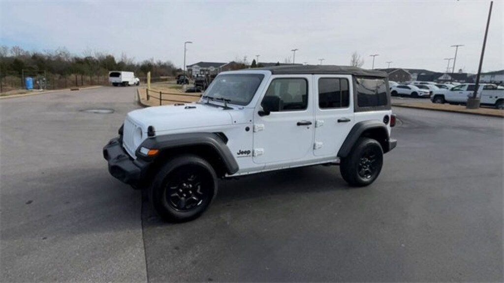 Recent Arrival!Bright White Clearcoat 2023 Jeep Wrangler 4D Sport Utility 3.6L V6 24V VVT Sport 4WD 8-Speed Automatic WILSON COUNTY MOTORS, A BONE FAMILY TRADITION SINCE 1927! Price does not include $796 Processing Fee , Taxes, Title and License.WE STAND BEHIND THE PRE-OWNED VEHICLES WE SELL. ALL USED VEHICLES 12 YEARS FROM THE CURRENT MODEL YEAR AND NEWER UNDER 100,000 MILES COME WITH A COMPLIMENTARY 3-MONTH / 3,000 MILES POWERTRAIN WARRANTY. IT'S JUST ANOTHER REASON WHY BUYING A VEHICLE FROM WILSON COUNTY MOTORS IS A STRESS-FREE EXPERIENCE!3.45 Overall Top Gear Ratio, 4-Wheel Disc Brakes, 8 Speakers, ABS brakes, Air Conditioning, AM/FM radio, Apple CarPlay, Apple CarPlay/Android Auto, Aux Battery, Brake assist, Cloth Low-Back Bucket Seats, Compass, Deep Tint Sunscreen Windows, Delay-off headlights, Driver door bin, Driver vanity mirror, Dual front impact airbags, Dual front side impact airbags, Electronic Stability Control, Emergency communication system: SiriusXM Guardian, Engine Oil Cooler, Front anti-roll bar, Front Bucket Seats, Front Center Armrest w/Storage, Front fog lights, Front reading lights, Google Android Auto, GPS Antenna Input, Integrated Center Stack Radio, Integrated roll-over protection, Integrated Voice Command w/Bluetooth, Low tire pressure warning, MOPAR All-Weather Floor Mats, MOPAR Windshield Tie Down, Non-Lock Fuel Cap w/o Discriminator, Normal Duty Suspension, Occupant sensing airbag, Outside temperature display, ParkView Rear Back-Up Camera, Passenger door bin, Passenger vanity mirror, Power steering, Quick Order Package 25B Sport, Radio data system, Radio: Uconnect 4 w/7 Display, Rear anti-roll bar, Rear reading lights, Soft Top Window Storage Bag, Speed control, Split folding rear seat, Steering wheel mounted audio controls, Stop-Start Dual Battery System, Tachometer, Telescoping steering wheel, Tilt steering wheel, Traction control, Trip computer, USB Host Flip, Variably intermittent wipers, Wheels: 17 x 7.5 Black Steel Styled.