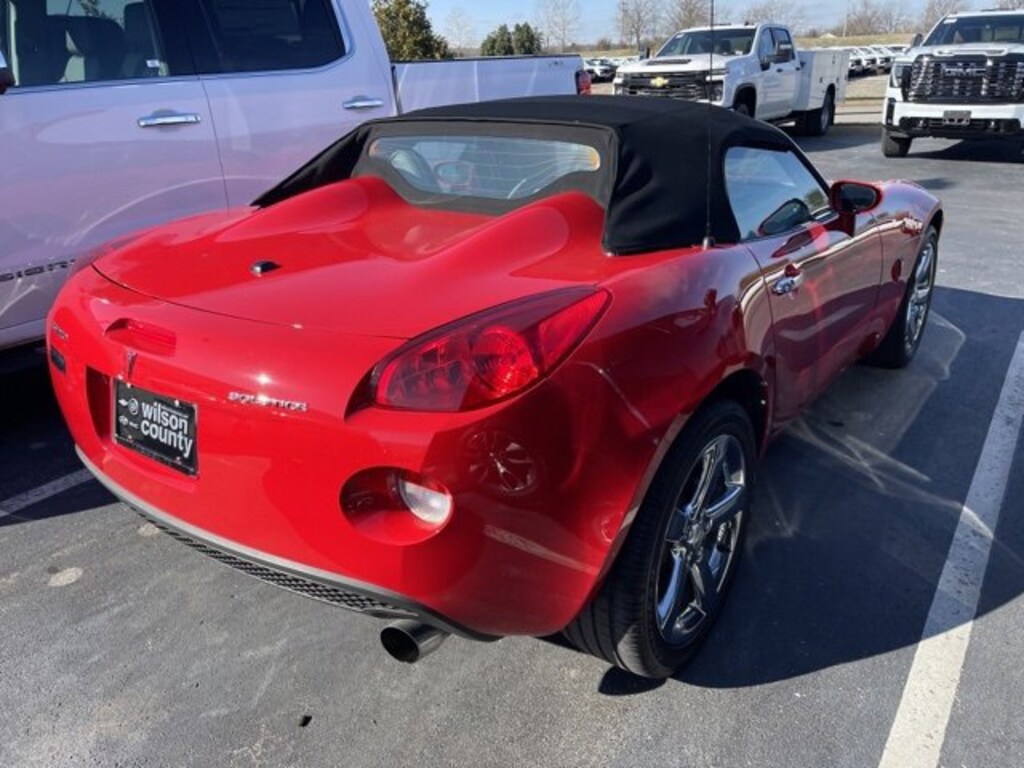 Recent Arrival! Odometer is 13659 miles below market average!Aggressive (Victory Red) 2007 Pontiac Solstice 2D Convertible ECOTEC 2.4L I4 SFI DOHC VVT RWD 5-Speed Manual WILSON COUNTY MOTORS, A BONE FAMILY TRADITION SINCE 1927! Price does not include $796 Processing Fee , Taxes, Title and License.WE STAND BEHIND THE PRE-OWNED VEHICLES WE SELL. ALL USED VEHICLES 12 YEARS FROM THE CURRENT MODEL YEAR AND NEWER UNDER 100,000 MILES COME WITH A COMPLIMENTARY 3-MONTH / 3,000 MILES POWERTRAIN WARRANTY. IT'S JUST ANOTHER REASON WHY BUYING A VEHICLE FROM WILSON COUNTY MOTORS IS A STRESS-FREE EXPERIENCE!18 Chromed Aluminum Wheels, 18 Silver-Painted Aluminum Wheels, 3-Spoke Leather-Wrapped Steering Wheel, 4-Wheel Disc Brakes, 6 Speakers, Alloy wheels, AM/FM radio, AM/FM Stereo w/CD Player/Seek & Scan, Bumpers: body-color, CD player, Cloth Seat Trim, Color-Keyed Front Carpeted Floor Mats, Convenience Package, Delay-off headlights, Driver 2-Way Power Height Adjustment, Driver Information Center, Driver vanity mirror, Dual front impact airbags, Electronic Cruise Control w/Set & Resume Speed, Four wheel independent suspension, Front anti-roll bar, Front Bucket Seats, Front Halogen Fog Lamps, Front reading lights, Fully automatic headlights, Glass rear window, Leather Seating Surfaces, Occupant sensing airbag, Power Door Locks, Power driver seat, Power steering, Power Windows, Power-Adjustable Body-Color Outside Mirrors, Preferred Package, Premium Headliner, Premium Package, Rear anti-roll bar, Rear window defroster, Remote Keyless Entry, Single-Zone Manual Air Conditioning, Speed-Sensitive Wipers, Steering Wheel Accessory Controls, Tachometer, Tilt steering wheel, Variably intermittent wipers, XM Satellite Radio.