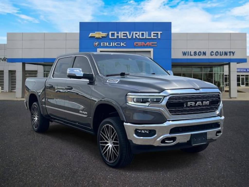 Recent Arrival!Granite Crystal Metallic Clearcoat 2023 Ram 1500 4D Crew Cab HEMI 5.7L V8 Multi Displacement VVT eTorque Limited 4WD 8-Speed Automatic WILSON COUNTY MOTORS, A BONE FAMILY TRADITION SINCE 1927! Price does not include $796 Processing Fee , Taxes, Title and License.WE STAND BEHINDTHE PRE-OWNED VEHICLES WE SELL. EACH VEHICLE IS CAREFULLY INSPECTED TO ENSURE QUALITY AND RELIABILITY, MAKING WILSON COUNTY MOTORS A STRESS-FREE PLACE TO BUY YOUR NEXT VEHICLE.10 Speakers, 4 Way Front Headrests, 4-Wheel Disc Brakes, 48V Belt Starter Generator, ABS brakes, Active Noise Control System, Adjustable pedals, Air Conditioning, Alloy wheels, AM/FM radio: SiriusXM with 360L, Anti-Spin Differential Rear Axle, Apple CarPlay/Android Auto, Audio memory, Auto High-beam Headlights, Auto-dimming door mirrors, Auto-Dimming Exterior Driver Mirror, Auto-dimming Rear-View mirror, Auto-leveling suspension, Automatic temperature control, Bodyside moldings, Brake assist, Bucket Seats, Bumpers: chrome, Chrome Exterior Mirrors, Compass, Convex Wide-Angle Exterior Mirror Insert, Delay-off headlights, Delete Spray In Bedliner, Driver door bin, Driver Seat Memory, Driver vanity mirror, Dual front impact airbags, Dual front side impact airbags, Dual Rear Exhaust w/Bright Tips, Electronic Stability Control, Exterior Mirrors Courtesy Lamps, Exterior Mirrors w/Heating Element, Exterior Mirrors w/Memory, Exterior Mirrors w/Supplemental Signals, Front anti-roll bar, Front Bucket Seats, Front Center Armrest w/Storage, Front dual zone A/C, Front fog lights, Front reading lights, Front Seat Back Map Pockets, Front wheel independent suspension, Full Length Premium Floor Console, Fully automatic headlights, Garage door transmitter, Genuine wood console insert, Genuine wood dashboard insert, Genuine wood door panel insert, Heated door mirrors, Heated Front Seats, Heated front seats, Heated rear seats, Heated Second Row Seats, Heated Steering Wheel, Heated steering wheel, Heavy-Duty Engine Cooling, HEMI Badge, Illuminated entry, Leather steering wheel, Low tire pressure warning, Memory seat, Navigation System, Occupant sensing airbag, Outside temperature display, Overhead airbag, Overhead console, Panic alarm, ParkView Rear Back-Up Camera, Passenger door bin, Passenger vanity mirror, Passive Tuned Mass Damper, Pedal memory, Power 4-Way Driver Lumbar Adjust, Power 4-Way Passenger Lumbar Adjust, Power 8-Way Driver & Passenger Seats, Power door mirrors, Power driver seat, Power passenger seat, Power steering, Power windows, Power-Folding Mirrors, Premium Leather Trimmed Bucket Seats, Quick Order Package 27M Limited, Radio data system, Radio: Uconnect 5 Nav w/12.0 Display, Rain sensing wipers, Rear 60/40 Folding Split Recline Seat, Rear anti-roll bar, Rear seat center armrest, Rear step bumper, Rear window defroster, Remote keyless entry, Security system, Speed control, Split folding rear seat, Steering wheel mounted audio controls, Tachometer, Telescoping steering wheel, Tilt steering wheel, Traction control, Trailer Brake Control, Trip computer, Turn signal indicator mirrors, Variably intermittent wipers, Ventilated Front Seats, Ventilated front seats, Ventilated Rear Seats, Ventilated rear seats, Voltmeter, Wheels: 20 x 9 Aluminum Painted/Polished.